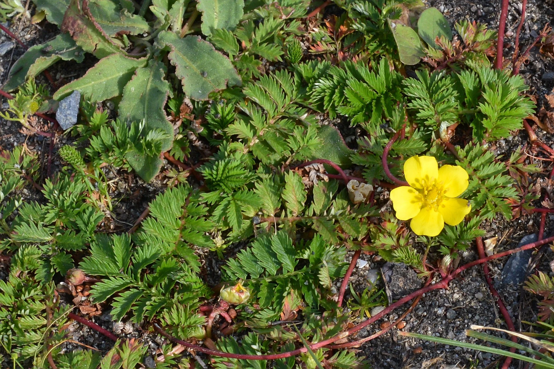 Common Silverweed is a low-growing herbaceous plant. Named after its feathery leaves that shimmer on their underside with a silver undertone with five-petaled yellow flowers. A member of the rose family, Silverweed flowers provide a nectar source for bees. Historically, Common Silverweed has been used for culinary purposes. The young leaves can be eaten raw in salads or cooked as a potherb. The root can be boiled or roasted and eaten as a vegetable or used to make flour. Silverweed is also known to have medicinal properties as it was used to treat digestive disorders, sore throats, and mouth ulcers.